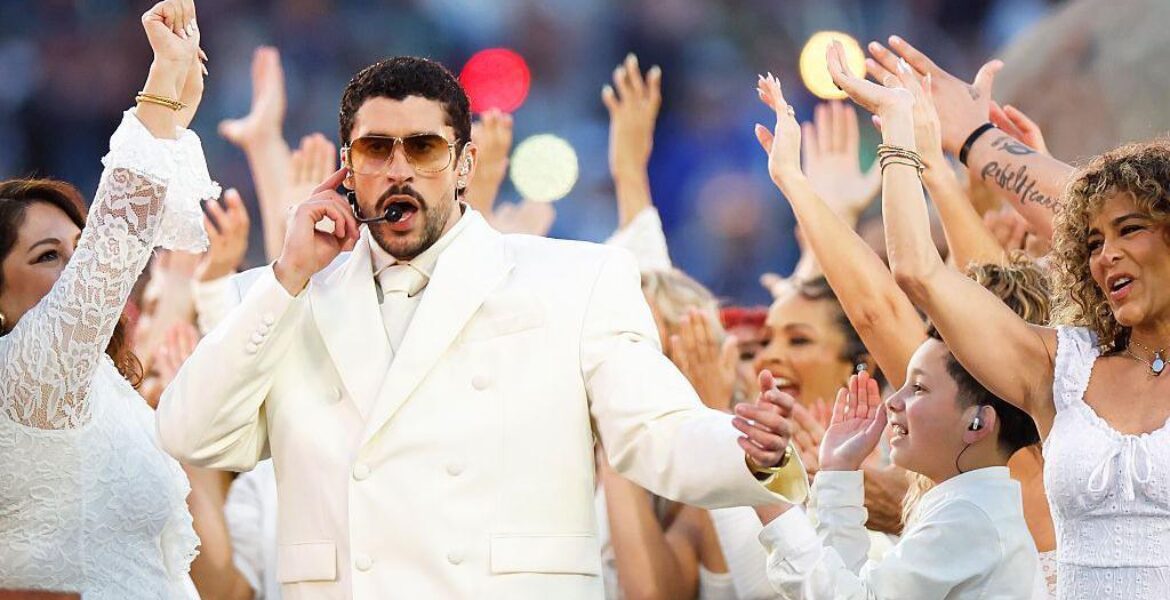 Quello di Bad Bunny al Super Bowl è diventato un caso (o forse un caos) complice soprattutto la politica del presidente americano Donald Trump, questa presenza non è proprio andata giù. L’artista portoricano è diventato il primo uomo latino ad esibirsi alla manifestazione sportiva con un’esibizione quasi interamente in spagnolo. L’unico momento in cui si canta in inglese è quando Lady Gaga, ospite a sorpresa, con il suo brano Die With a Smile riarrangiato per l’occasione e contestualizzato in versione salsa.