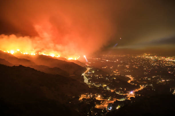 Rescue teams evacuating neighborhood from wildfire