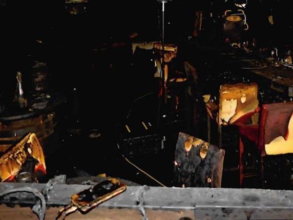 Le bottiglie di Champagne ancora sui tavoli, bruciati, così come le poltroncine e i divanetti. Il soffitto del seminterrato lacerato, mentre muri e mensole anneriti, quasi da non distinguere gli uni dalle altre. Le scale strette, troppo strette per consentire a tutti di fuggire e di mettersi in salvo all’esterno di quel locale, ormai diventato una trappola mortale. E poi spiccano quei dettagli, come la scarpa bianca in mezzo alla devastazione, o il cellulare bruciato ancora attaccato al filo che lo stava caricando. E il chiavistello della porta di servizio, forzata dai soccorritori. Se fosse stata aperta, avrebbe potuto salvare delle vite.