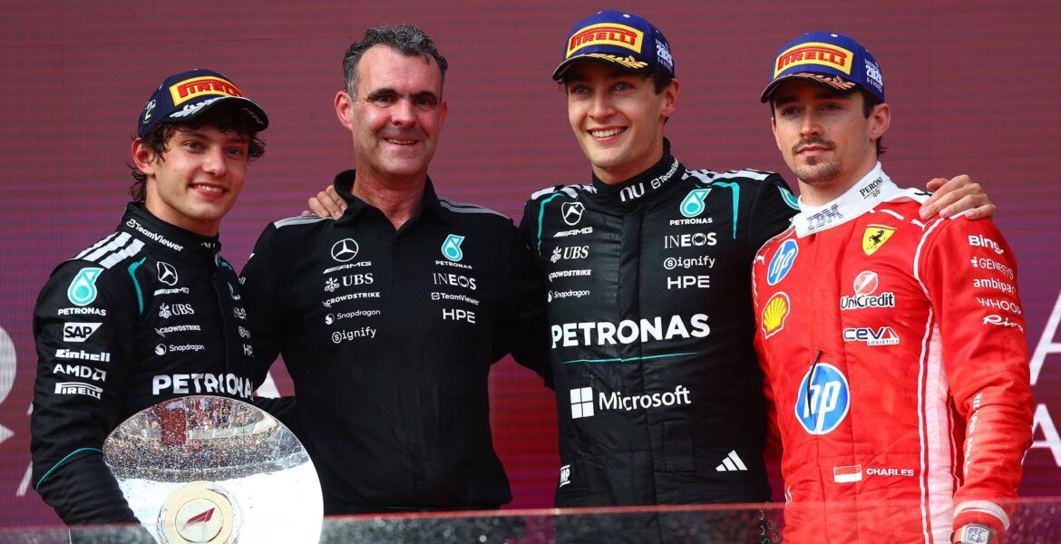 La doppietta della Mercedes è parsa scontata già dalle prove libere prima, e dalle qualifiche dopo. Tuttavia, la strategia perfetta del team di Brackley ha aiutato a confermare le aspettative. Alla chiamata della safety car per il ritiro di Hadjar, entrambi i piloti sono rientrati ai box per un cambio gomme anticipato. Decisione diversa, invece, per la Ferrari che ha scelto di chiamare Leclerc ai box per il pit stop al 26° giro, mentre Hamilton alla 29esima tornata, tenendo fede alla strategia pensata prima della gara. La speranza del Cavallino era un crollo prestazionale della team di Toto Wolff sul finale della corsa che avrebbe permesso così alle rosse di avvicinarsi e lottare per la vittoria. A posteriori, la scelta azzeccata è stata quella del team di Brackley, anche se il passo gara dei due ferraristi era in linea con quello di Russell e Antonelli, staccati però di 15 secondi.