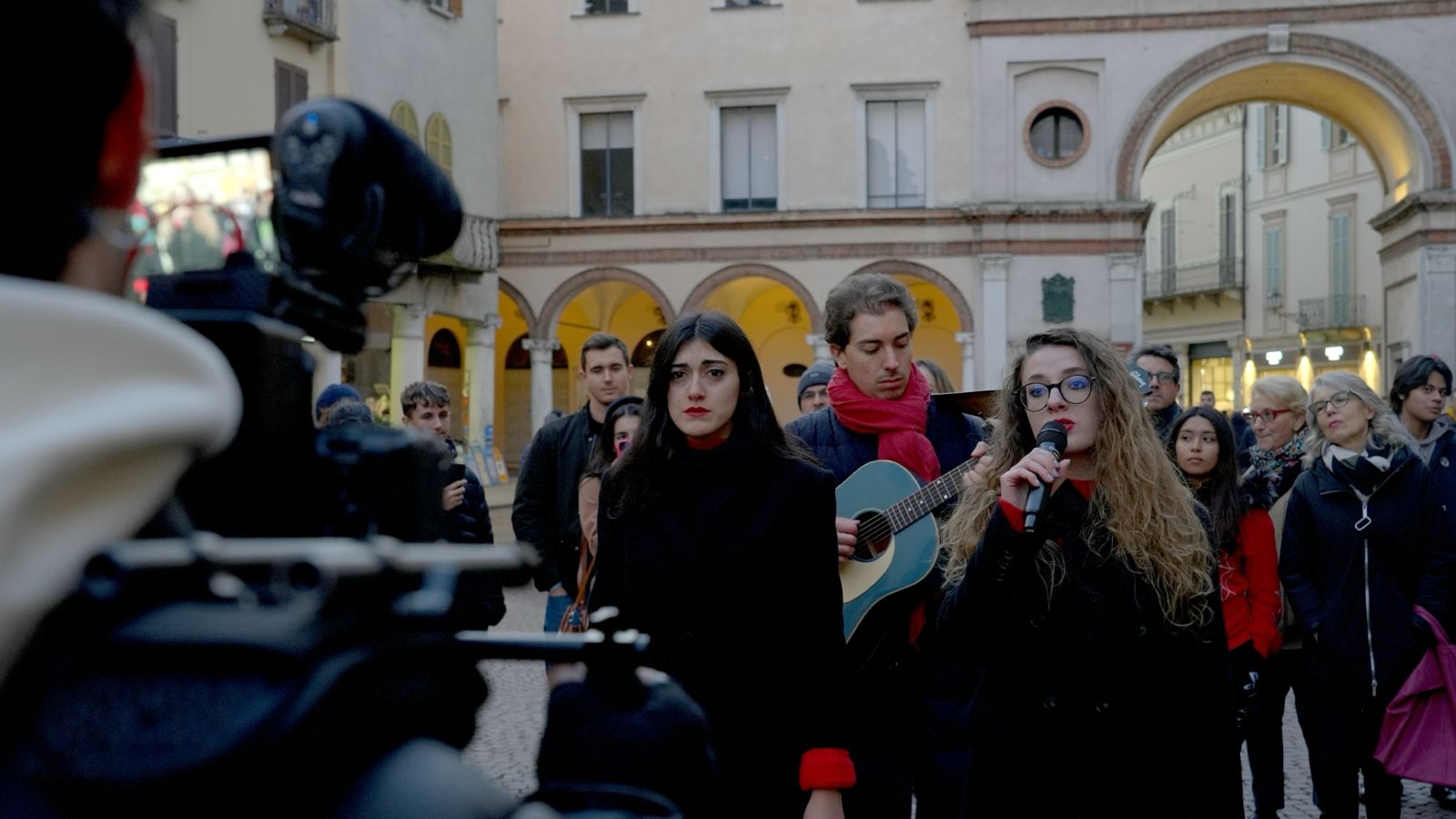 Le reazioni? «Abbiamo destato tanta curiosità spontanea. Le cantanti che si sono ritrovate circondate dai passanti, che alla fine sono diventate comparse contribuendo all’amplificazione del messaggio». L’effetto finale è un contrasto percettivo, tra le parole del testo che rimandano alla confessione di una violenza e le immagini che invece invocano speranza e solidarietà. «Tanta copertura mediatica non basta, bisogna indirizzare i messaggi sui canali giusti» il commento finale di Recenti.