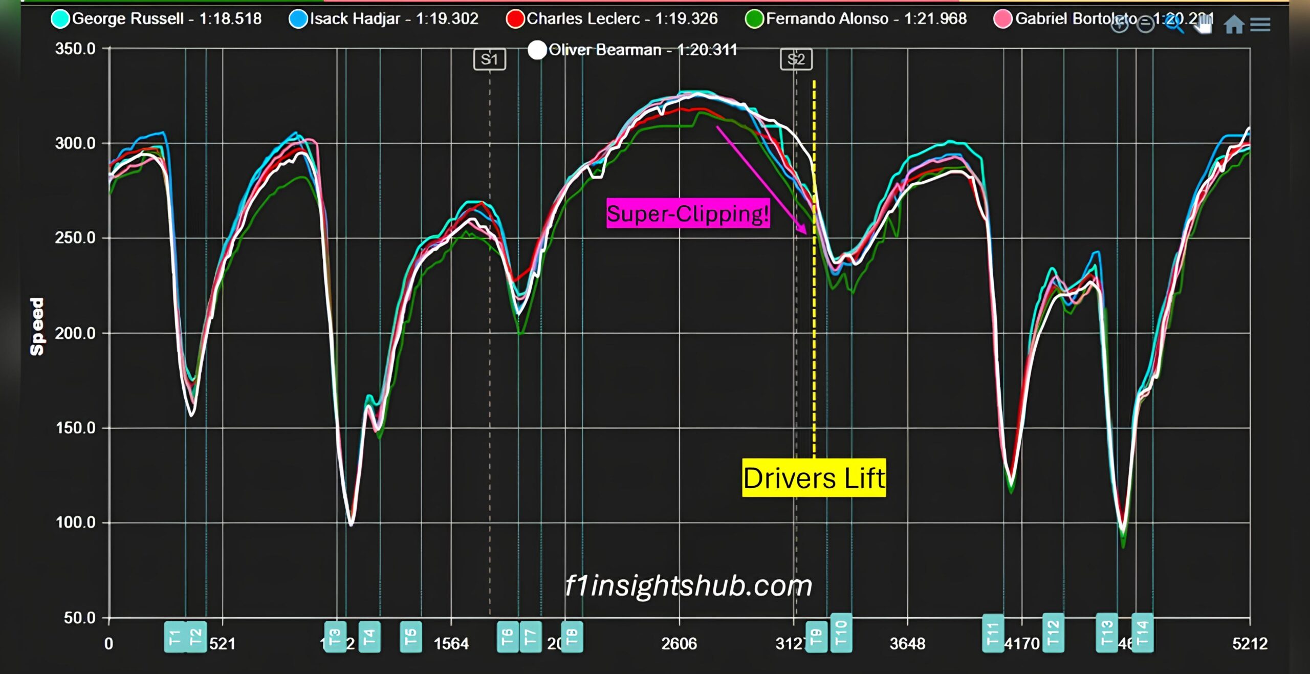Al di là delle opinioni, come sempre è il cronometro che non lascia adito a scuse. In 77 anni, è la quarta volta che in un cambio regolamentare le monoposto di nuova generazione prendono un distacco di più di tre secondi alla prima qualifica dell’anno. Nel 2025 Lando Norris ha firmato la pole in 1:15.096, mentre George Russell si è preso la prima posizione in 1:18.518, un salto all’indietro di ben 3.422 secondi. Il limite principale è nelle velocità di punta. Nella simulazione di qualifica di Max Verstappen, in rettilineo e con il gas spalancato, la sua RB22 passa da una velocità di 326 a 279 km/h (un super-clipping di 47 km/h) perché l’energia della batteria termina.